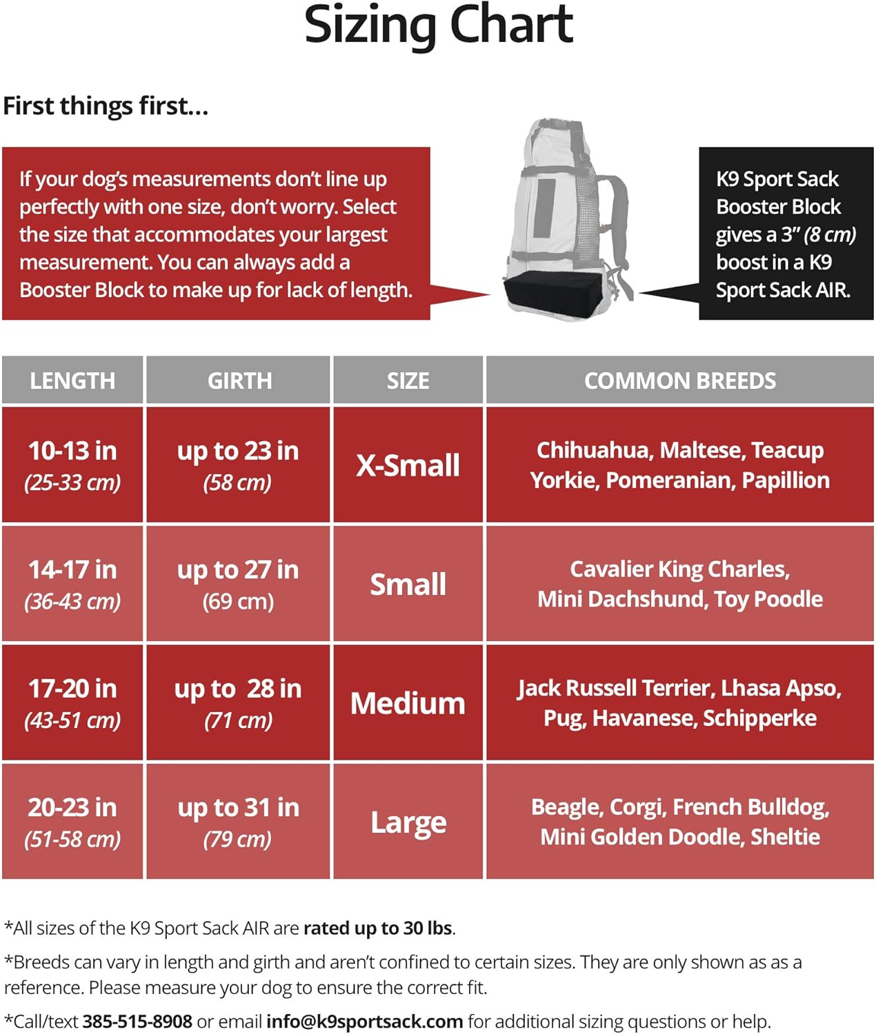 - FIND THE RIGHT SIZE - The Small is best for dogs with a length of 13-16” from collar to the base of the tail and a girth up to 27”. Typical dog breeds that will fit this size backpack include Jack Russell Terrier, Mini French Bulldog & Pomeranian.