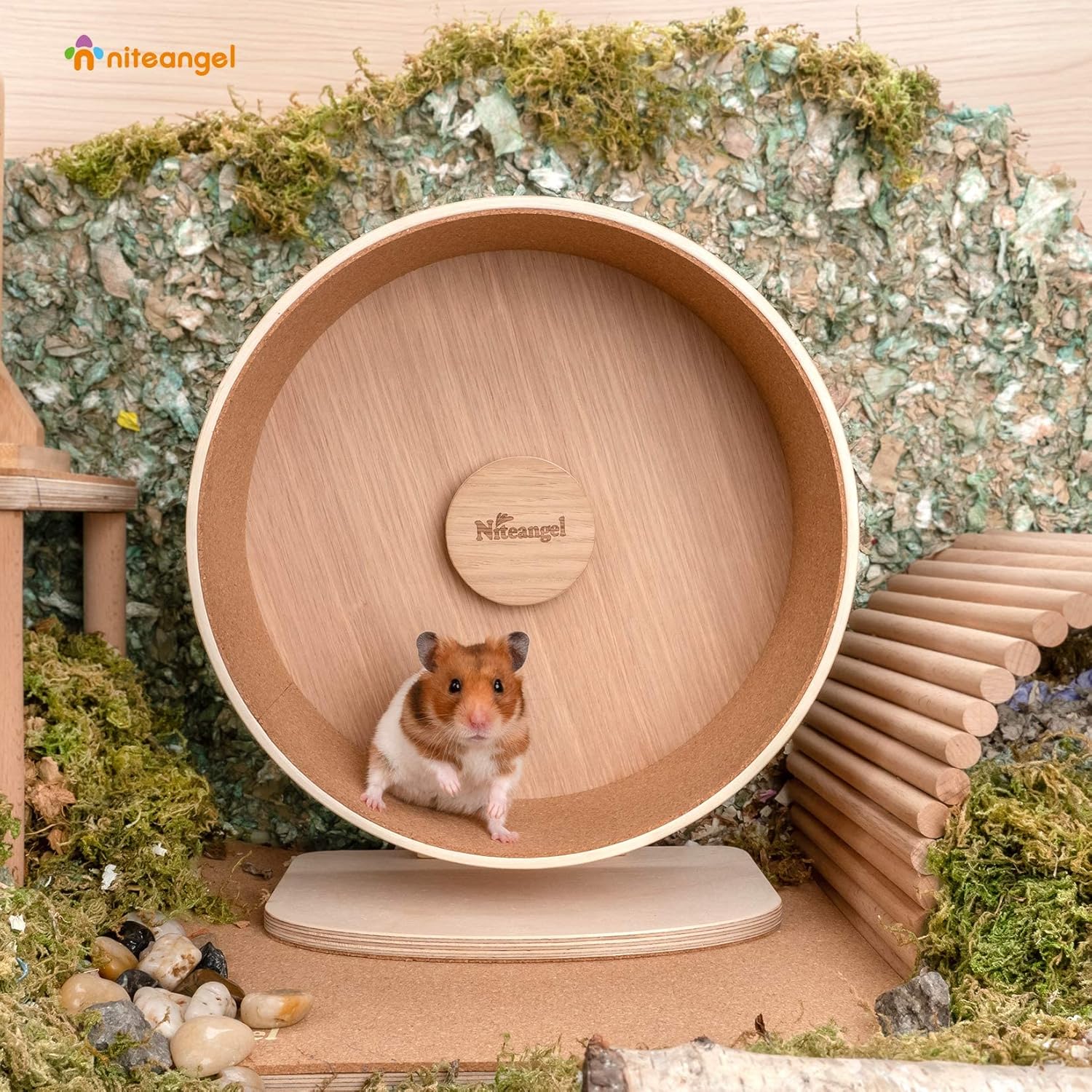 Niteangel Wooden Hamster Exercise Wheel: - Silent Hamster Running Wheel for Hamsters Gerbil Mice and Other Similar-Sized Small Pets (M)