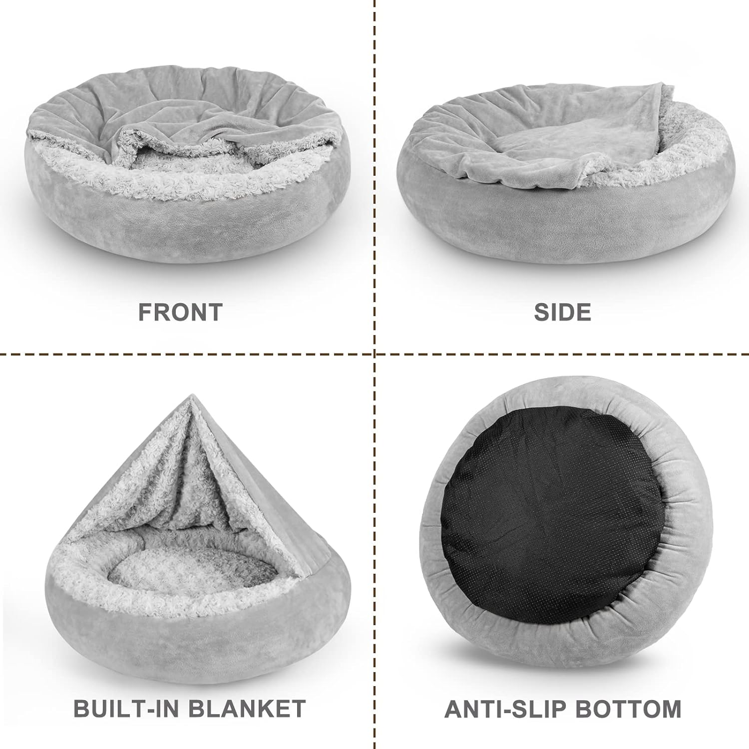 - ❤Luxury Cat Cave Bed and Sofa: Our cat bed with a hood gives your furry friends some privacy and warmth! Donut Round dog bed provides the ultimate comfort for dogs/cats who love to cuddle, curl and snuggle while sleeping. Cat pillow is surrounded by cushioned walls, they have extra head and neck support and can settle deep in the snug crevices.