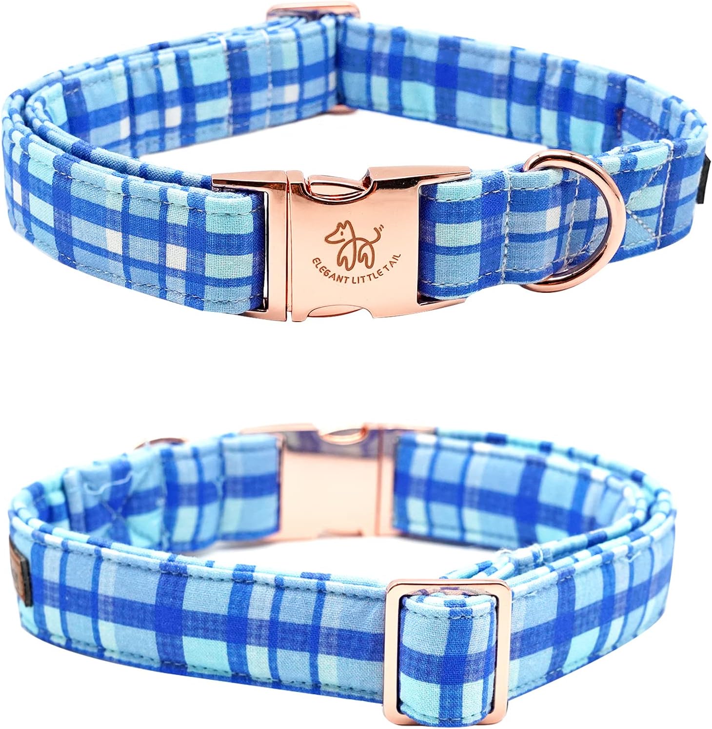 Elegant little tail Dog Collar with Bow - Blue Plaid Boy Dog Collar Cute Bowtie Pet Collar Adjustable Dog Collar for X-Large Dog