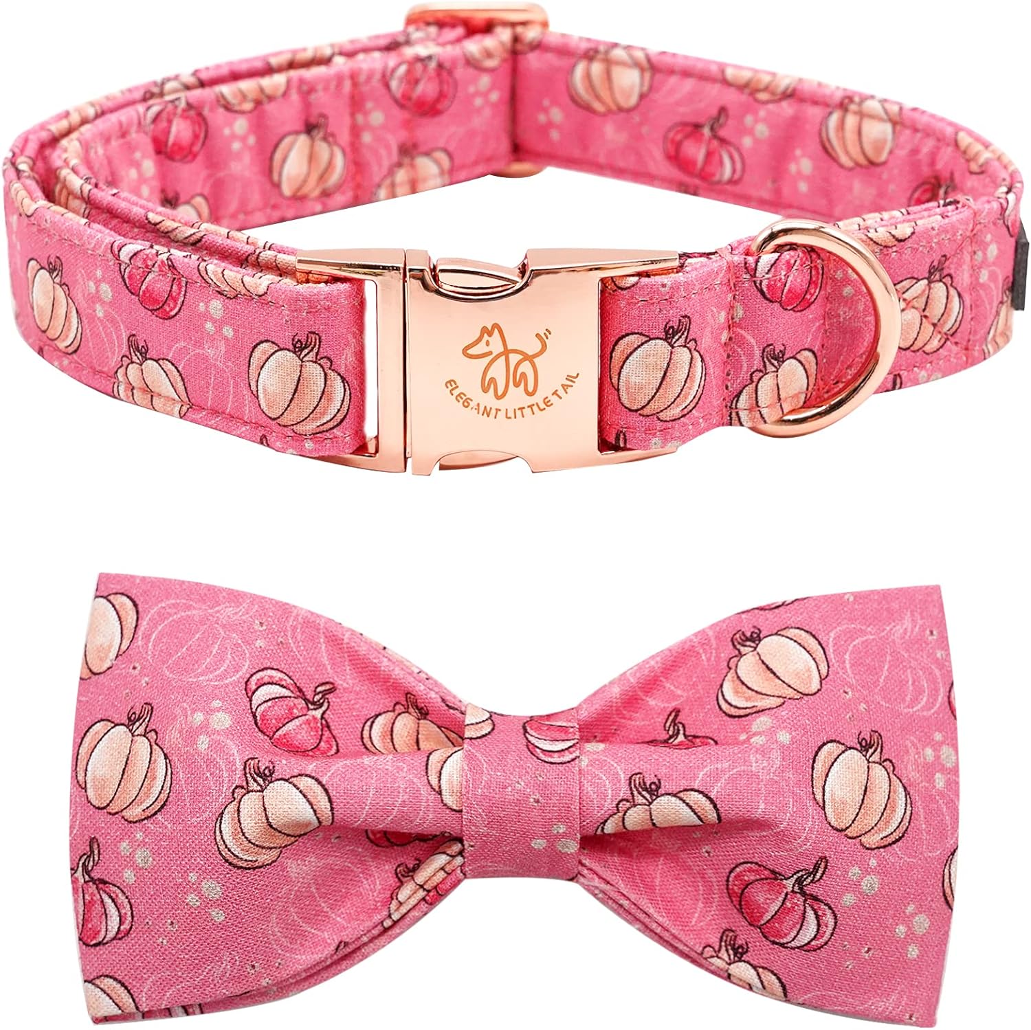 Elegant Little Tail Dog Collar with Bow, Adjustable Halloween Pumpkin Bowtie Collar for Small to Large Dogs