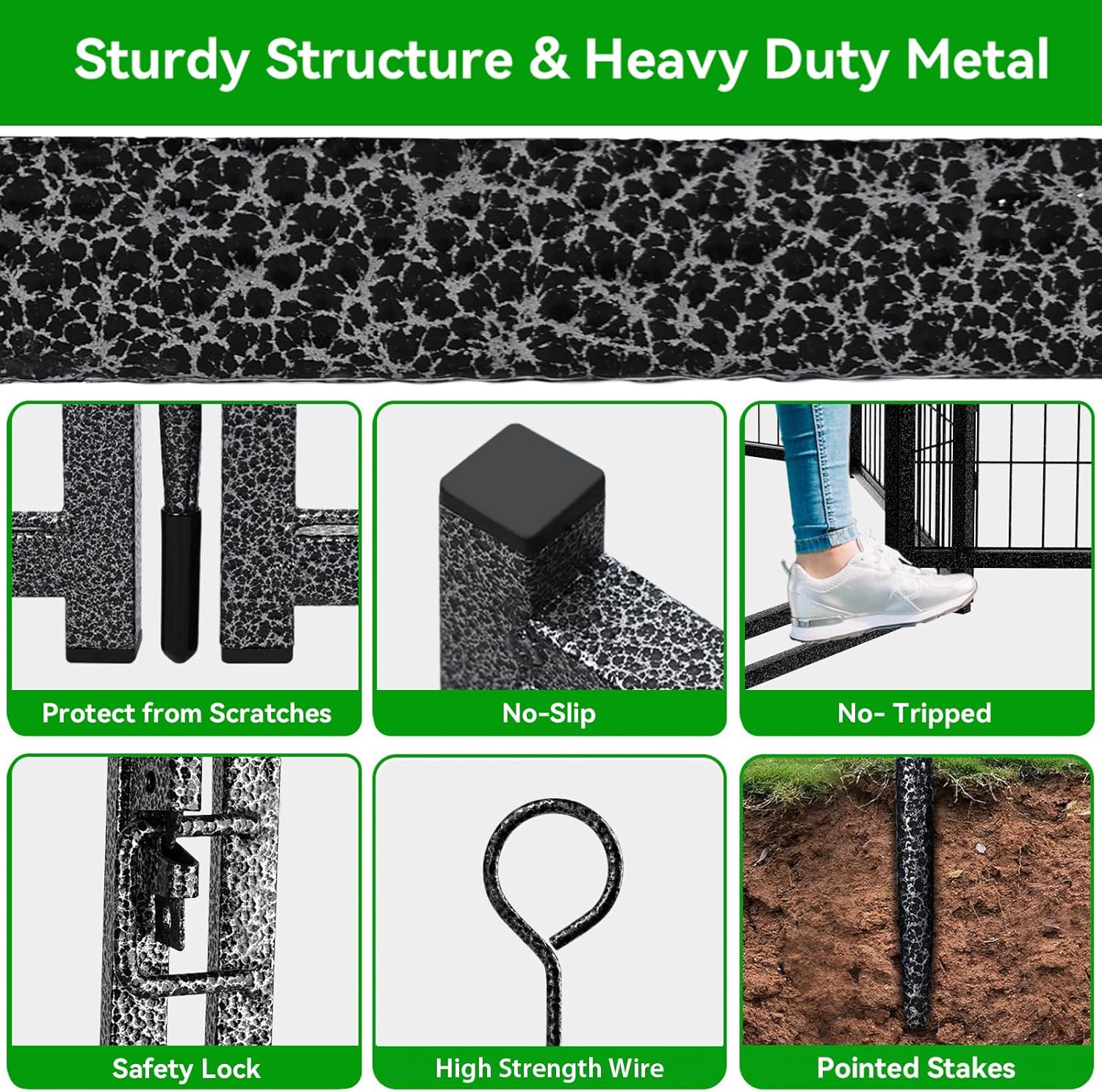- 【Sturdy Structure & Stable Ground Stakes】Kfvigoho metal stakes are designed round top, which can be pounded into the ground for greater stability, this dog fence with sturdy structure, so dogs can't knock it down and keep them confined in a safe area, the pet pen works great for small, medium and large dogs and rabbits, ducks, turtles etc