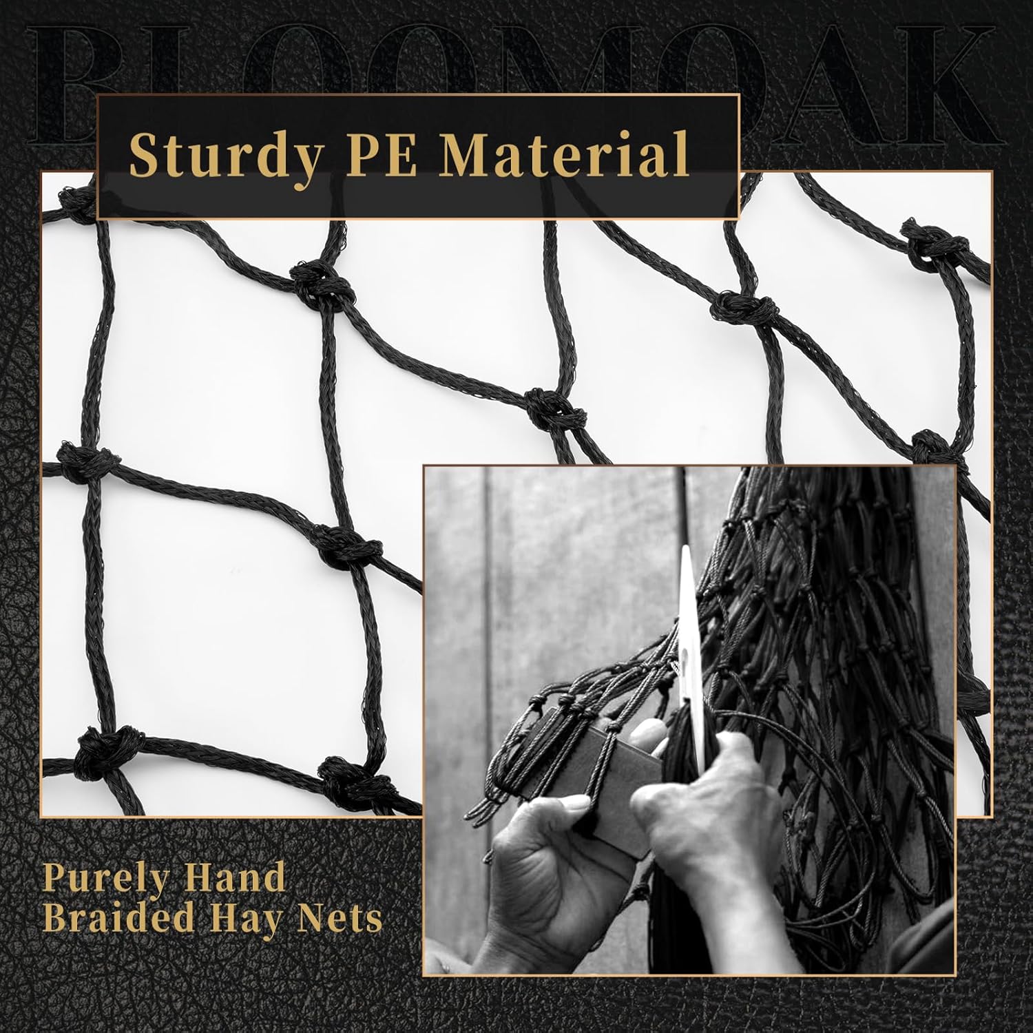 Bloomoak Slow Hay Net Feeder for Horses, Durable Soft Black PE 2String Hay Bales Bags with 2" Hole, Fit 36 * 18 * 18" Square Bale EasilyâŚ