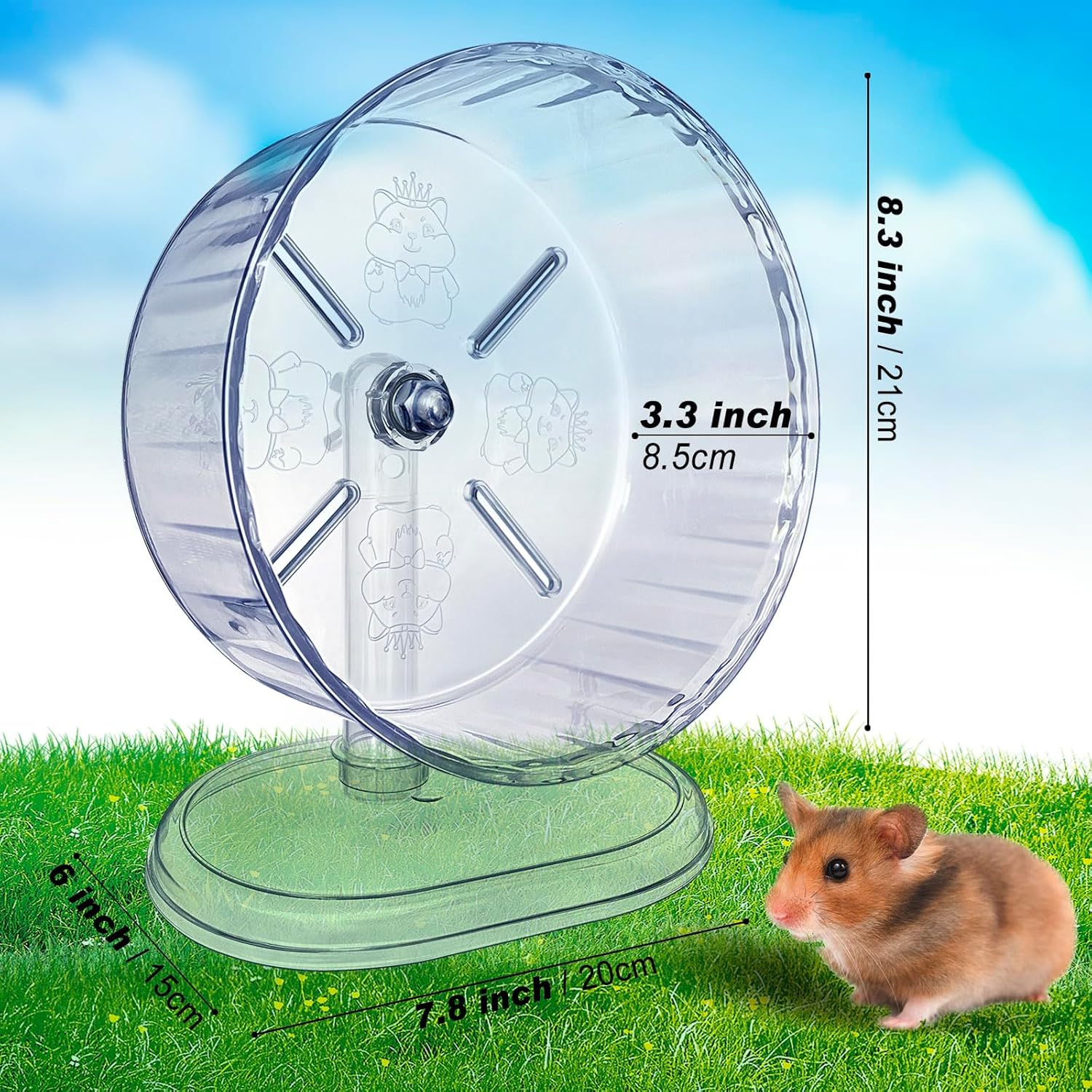 - š» STAND AND CAGE DUAL PURPOSEāļ¼hamster wheel with stand, Free standing or attach directly to any wire cage, large hamster wheel easy installation. hamster saucer Reasonable Size of Running Drum & Wide Running track brings a relax back feeling, they do not need to bend their back when running, let them enjoy their endless running time.