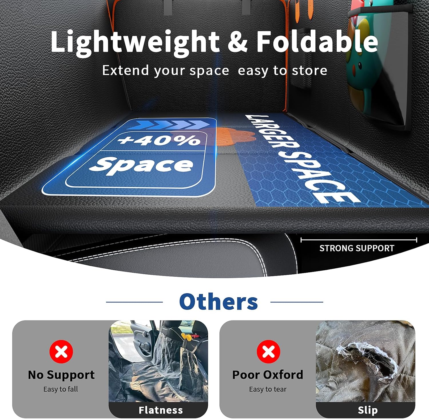 - ใ๐๐ฑ๐ญ๐๐ง๐๐๐ ๐๐ฉ๐๐๐ & ๐๐๐๐ฎ๐ซ๐ ๐๐ข๐๐ใTransform your back seat into a spacious dog hammock for car! This heavy-duty back seat pet cover for dogs expands to 55"x25", adding 40% more activity space for large breeds or multi-dog families. The hard bottom supports 400lbs, while the EVA non-slip backing keeps the cover stable โ let your pups stretch safely on long trips!